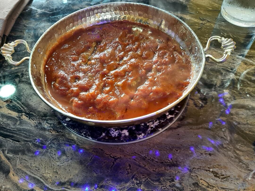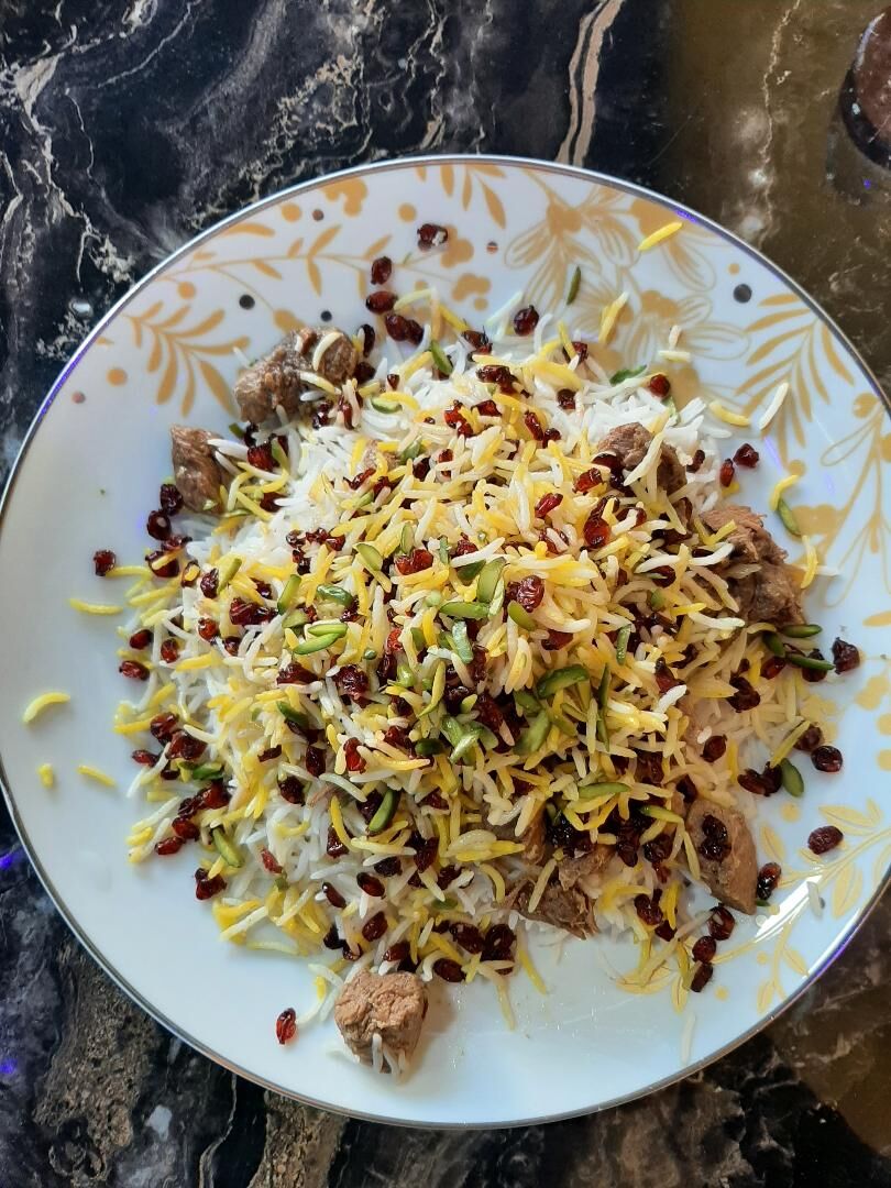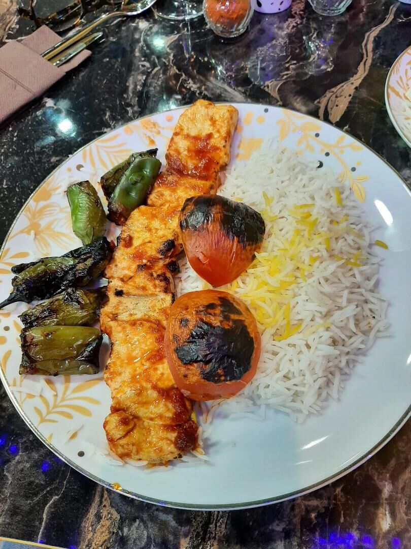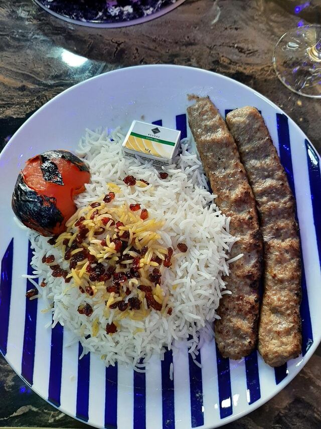 Notre chef, qui a plus de onze ans d'expérience dans des restaurants à Téhéran, prépare une authentique cuisine persane : non seulement il sert des plats traditionnels iraniens cuisinés sur place tels que le ghormeh sabzi, le gheymey nesar, ou le zereshk polo, mais il a aussi suivi en Iran la formation particulière pour préparer et cuire les koubideh - sa cuisine est équipée du grill spécial nécessaire importé d'Iran - et d'autres brochettes comme les chello koubideh ou les baal kebabi.